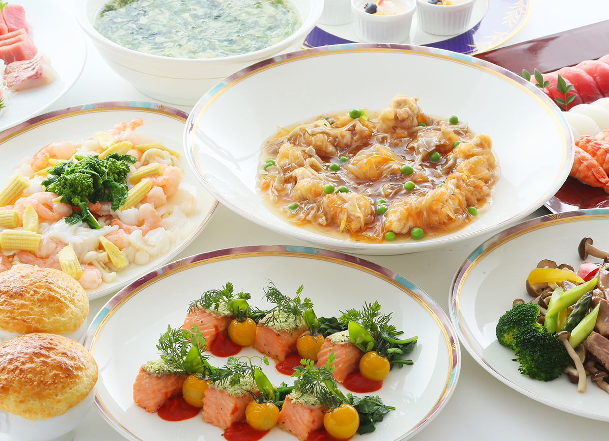 | お料理 | 和洋卓盛、洋中卓盛、和中卓盛、和洋中ブッフェ料理よりお選びください |