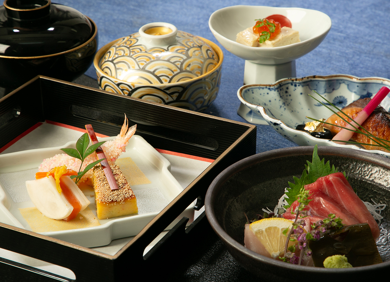 | お料理 | 日本料理会席、フレンチコース、中国料理コースよりお選びください |